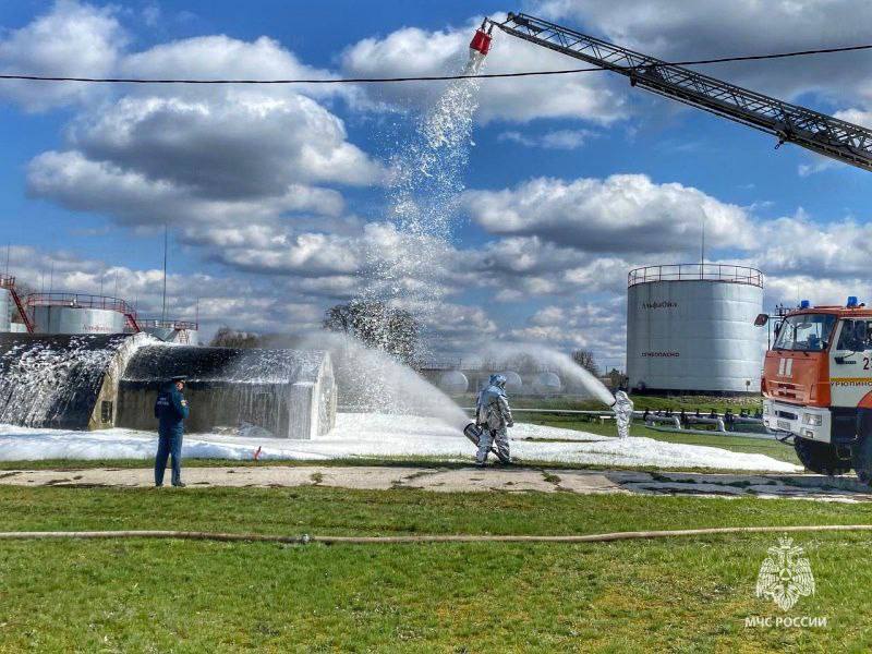В Урюпинске прошли учения пожарных: отработали тушение возгорания на нефтебазе